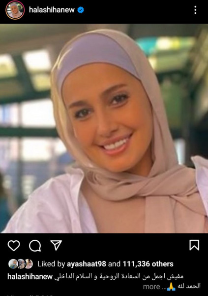 القاهرة- البيادر السياسي:ـ نشرت الفنانة المصرية حلا شيحة صورة لها على حسابها الخاص على موقع تبادل الصور(انستغرام)، وهي ترتدي الحجاب بالكامل، وجاء ذلك رداً على نفي والدها عودتها للحجاب.