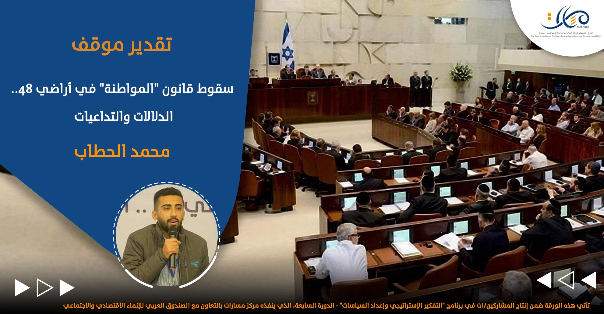 سقوط قانون “المواطنة” في أراضي 48 .. الدلالات والتداعيات.. محمد الحطاب