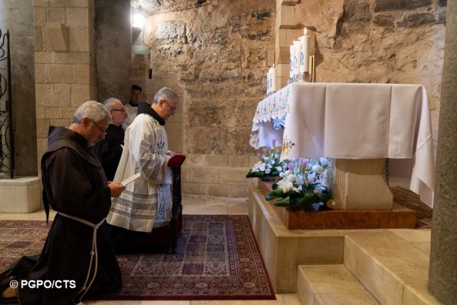 الأب فوساريلي يصلي في كنيسة البشارة السفلى