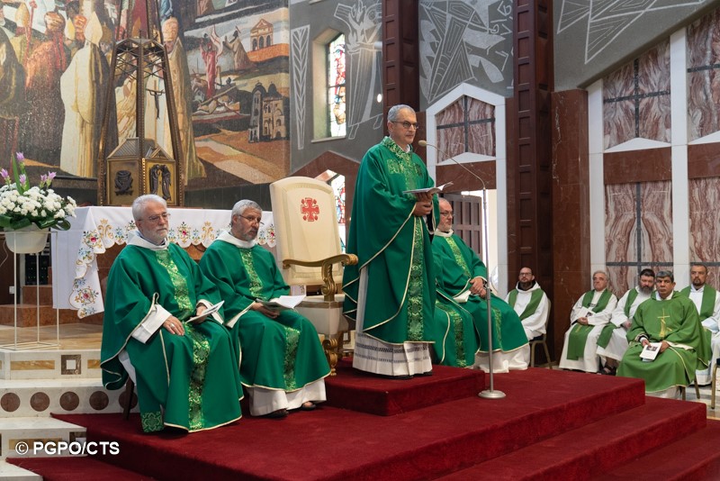 بعد ترنيمة قصيرة، أجاب الأب فوساريلي بدوره على هذا الخطاب، قائلاً: “في نهاية المجمع العام، توجهت أنا والنائب العام إلى مزار البورتسيونكولا كي نعهد إلى العذراء مريم بأمر خدمتنا: اليوم، في الناصرة، نريد أن نفعل الأمر نفسه، فنعهد إليها بجميع الإخوة والأخوات في رهبانيتنا، حتى نكون إخوة وأصاغر في هذه اللحظة من حياتنا”. وأعقب رتبة الدخول الاحتفالي، الاحتفال بالقداس الإلهي في البازيليكا العليا ومن ثم تلاوة صلاة التبشير الملائكي، وقد ترأس كلا الرتبتين الرئيس العام نفسه.