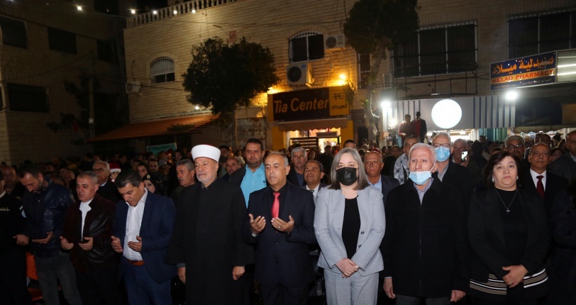 وتحدث عزام الأحمد عضو اللجنة التنفيذية لمنظمة التحرير عن تكاتف هذه المدينة بمسيحييها و مسلميها فهي ارض الأنبياء والشهداء، ولنعمر من وحدتنا ما هو واجب علينا في حماية المقدسات من اي اعتداء من المستوطنين.