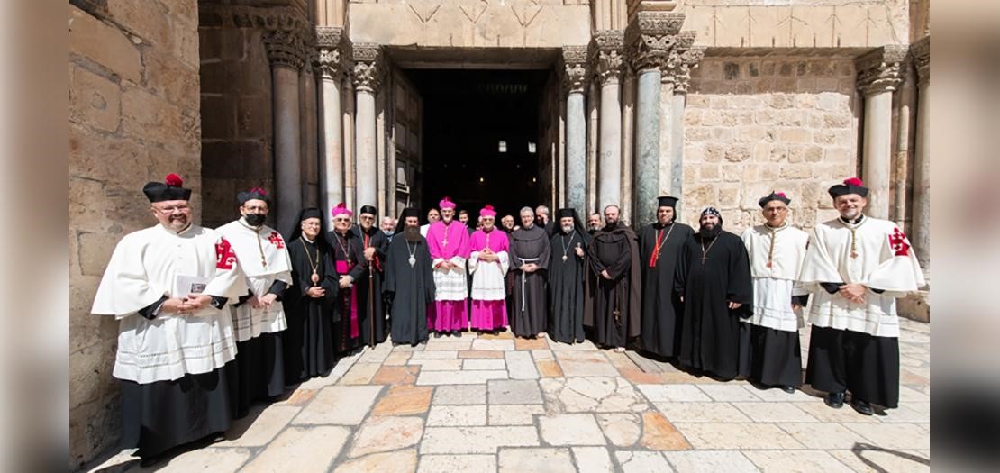 رؤساء كنائس القدس خلال استقبال القاصد الرسولي الجديد في كنيسة القيامة