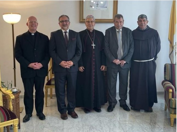 ونقل خوري تحیات سيادة الرئیس محمود عباس إلى قداسة البابا فرنسیس، كما ھنأ القاصد الرسولي خوري على الثقة التي منحه إياها سيادة الرئیس محمود عباس والمجلس المركزي الفلسطيني وانتخابه رئيسا للصندوق القومي الفلسطيني وعضوية اللجنة التنفيذية لمنظمة التحرير الفلسطينية.