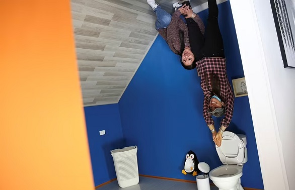 صور.. منزل معكوس يجذب السياح في كولومبيا