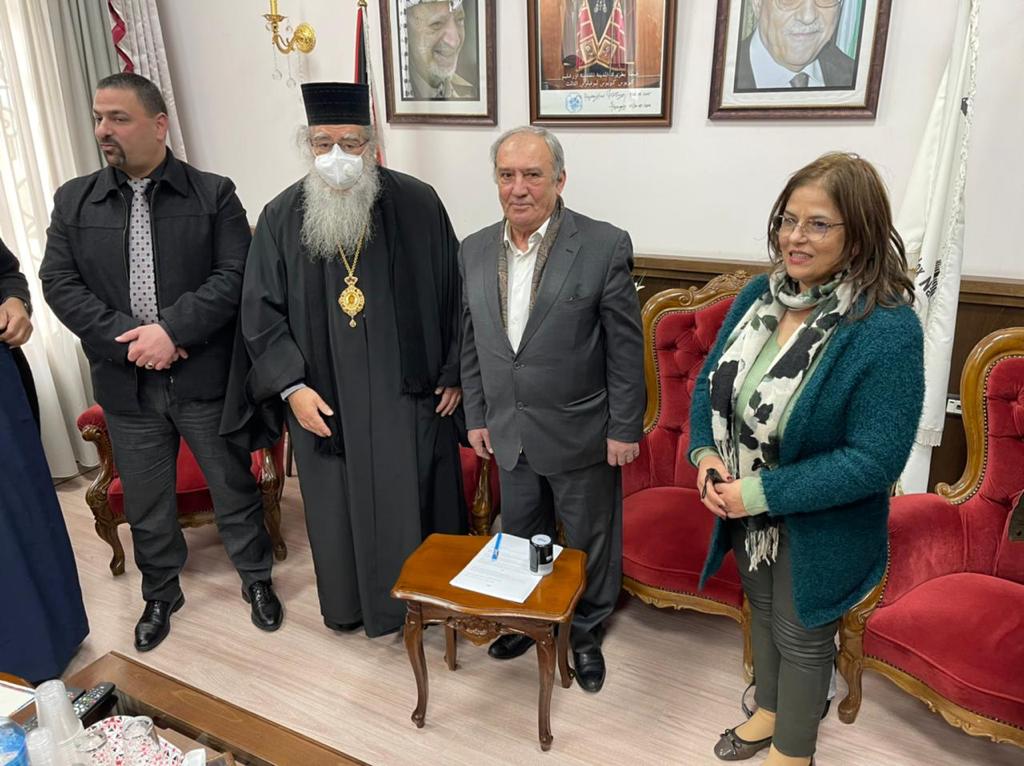 وبتوجيهات غبطة البطريرك ثيوفيلوس الثالث، وبرعاية الوكيل البطريركي في بيت لحم سيادة المطران فينذكتوس، وحضور ممثلين عن اللجنة الرئاسية العليا لشؤون الكنائس، تم التوقيع على تنازل بطريركية الروم الأرثوذكس المقدسية ممثلة بمستشارها القانوني الأستاذ هادي مشعل عن قطعة الارض لصالح الجمعية الخيرية الوطنية الأرثوذكسية – بيت لحم، ممثلة برئيسها ميشيل فريج اليوم.