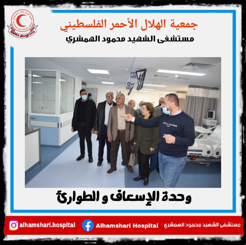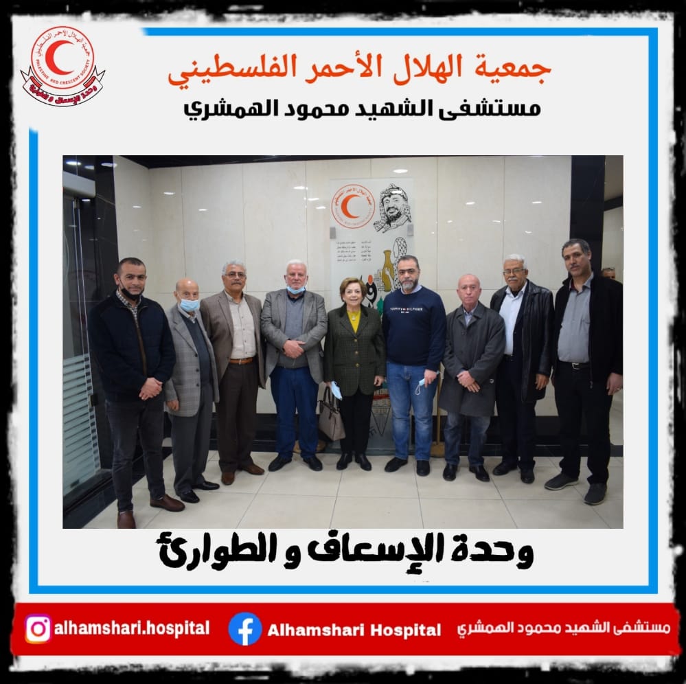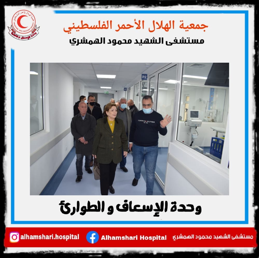 بيروت- البيادر السياسي:ـ زارت رئيسة مؤسسة أسر الشهداء والجرحى إم جهاد الوزير مستشفى الشهيد محمود الهمشري ( المستشفى المركزي لجمعية الهلال الأحمر الفلسطيني في لبنان ) يرافقها أمين سر الساحة الأخ فتحي أبو العردات وأمين سر إقليم حركة فتح الأخ حسين فياض ورئيس مؤسسة الشؤون في لبنان الأخ عمر السوقي ( شريف ) ومسؤول إعلام حركة فتح الأخ علي خليفة ومسؤول منطقة صيدا اللواء ماهر شبايطة وقيادة فصائل منظمة التحرير الفلسطينية ، حيث كان في إستقبالهم مدير المستشفى الدكتور رياض أبو العينين وعدد من الطاقم الطبي والإداري والتمريضي.