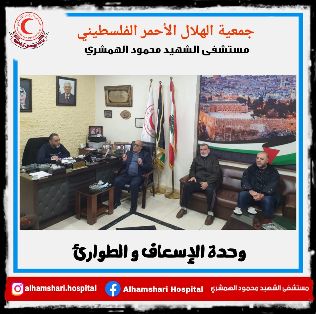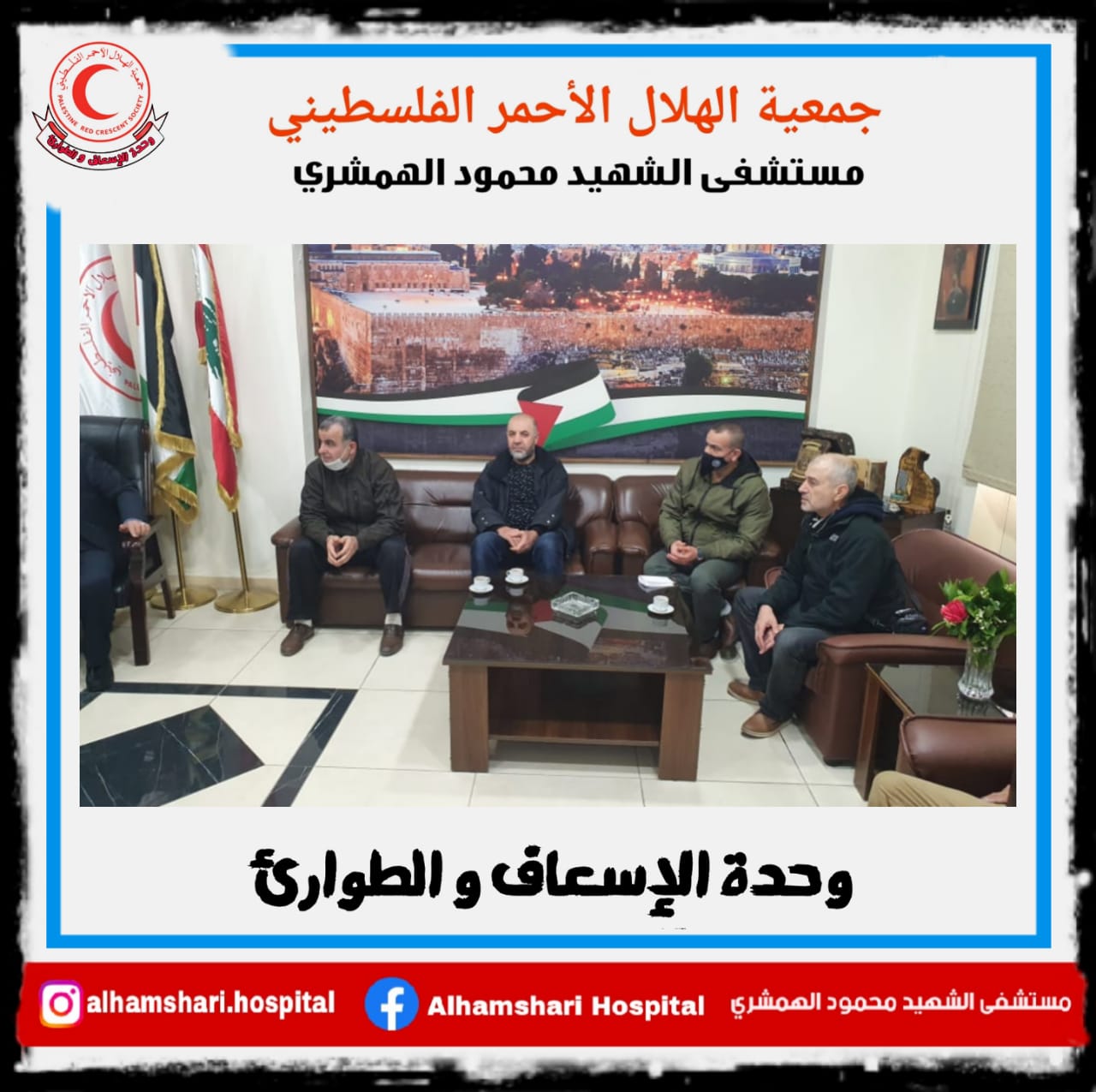 كما شكر الحاج علي أصلان والوفد الكريم الدكتور رياض والطاقم الطبي والتمريض غي مستشفى الهمشري على الجهود التي يبذلونها لخدمة مجتمعنا الفلسطيني واللبناني على حدٍ سواء وخاصة فريق الإسعاف والطوارئ الذي يجول المخيمات والتجمعات الفلسطينية على كافة الأراضي اللبنانية دون تمييز .. والتي تصب في خدمة أهلنا للتخفيف عن الكاهل الصحي لديهم وكذلك على النقلة النوعية في تطوير المستشفى حيث كان مستشفى الهمشري من أوائل المستقبلين لحالات الكرونا ..