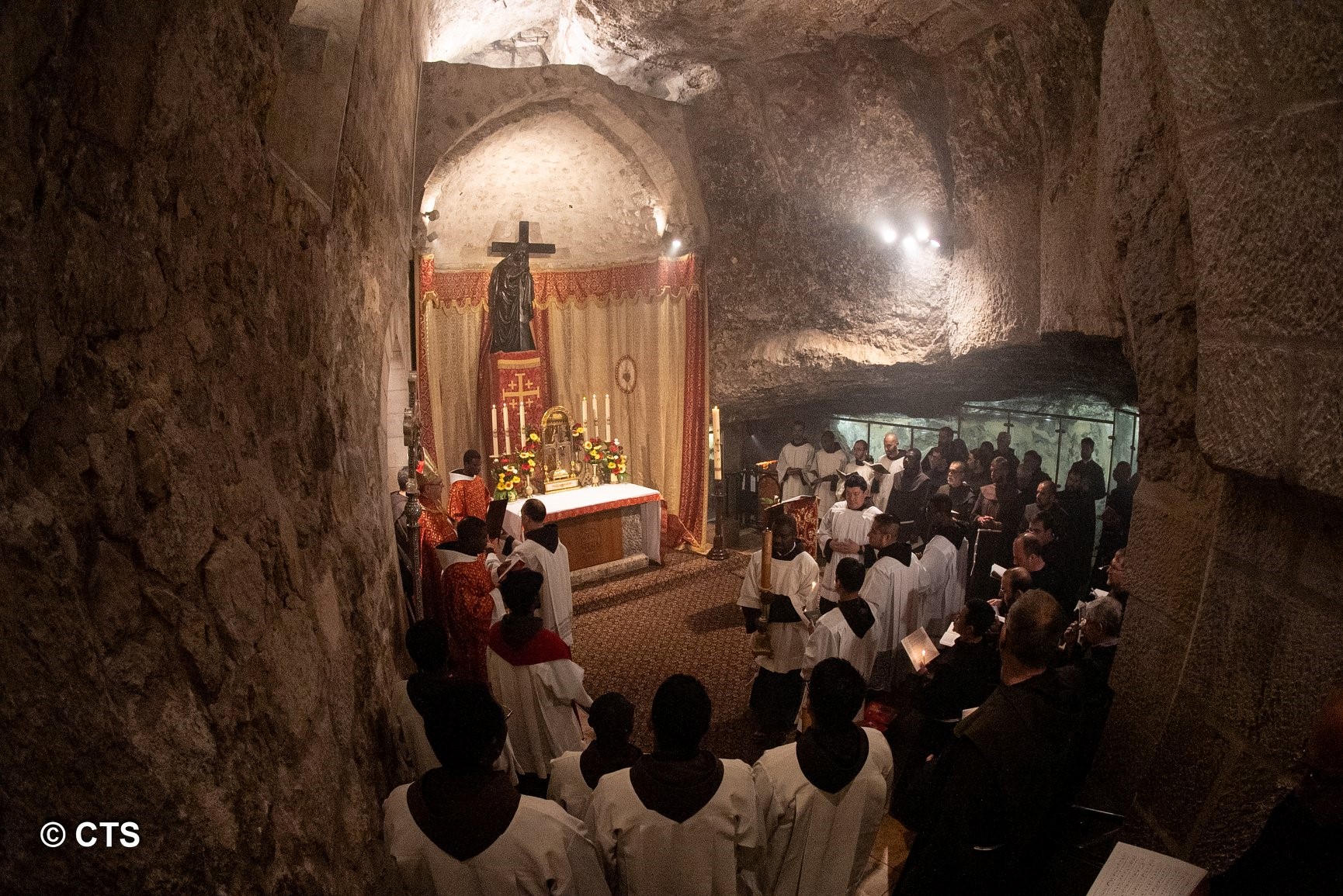 وترأس الاب فرانشيسكو باتون حارس الاراضي المقدسة (الآباء الفرنسيسكان) القداس الحبري الكبير في كنيسة مغارة الصليب داخل كنيسة القيامة،عاونه، لفيف من الآباء الكهنة ورئيس كنيسة القيامة قسم اللاتين ولفيف من كهنة ورهبان الفرنسيسكان .