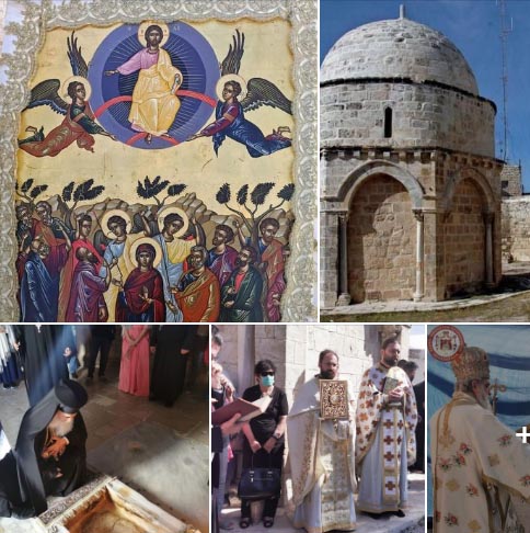 القدس-أبو أنطون سنيورة—احتفلت الكنائس المسيحية الارثوذكسية وهي الروم,الارمن,السريان,الاقباط ,الاحباش والروس الارثوذكس أمس بعيد صعود السيد المسيح له المجد الى السماء من مزار مقام الصعود من على جبل الزيتون (بالطور) في القدس.وقد أقامت هذه الكنائس منذ فجر أمس القداديس والصلوات الانجيلية الدينية والادعية والابتهال الى الله في كل خيمة أقيمت لكل طائفة في باحة مزار المقام في موقع الصعود حسب الاستاتيسكو المتبع.