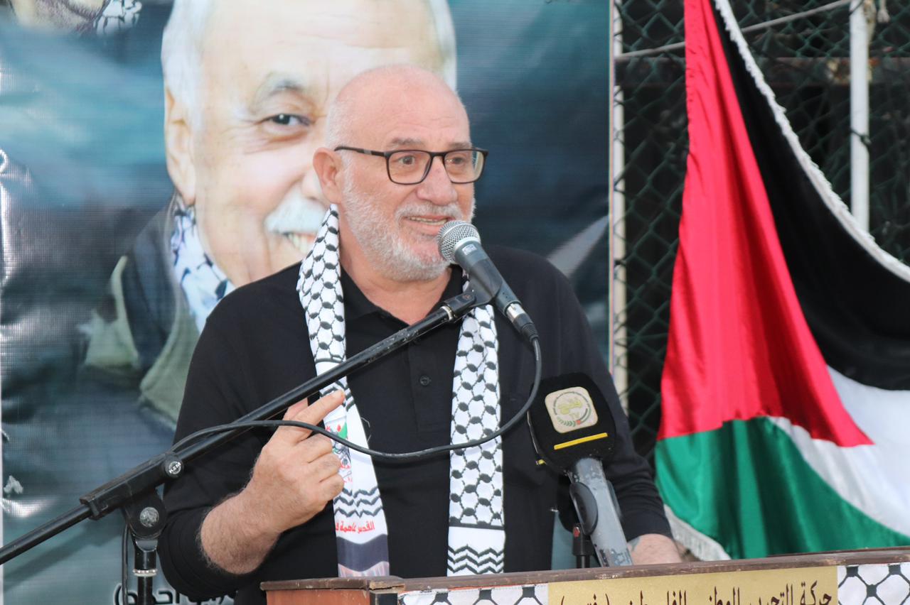 كلمة حركة “فتح” ألقاها اللواء توفيق عبدالله قال فيها: “بداية أتقدم بالشكر الجزيل للحاج المجاهد النائب علي خريس، وأرحب به في مخيمه، مخيم البص، الذي لا يترك مناسبة فلسطينية إلا ويكون السباق للمشاركة فيها، فتحية له وللجنوب المقاوم الحضن الدافئ للشعب الفلسطيني، اشكر الحاج علي خريس الذي يقف إلى جانب أبناء الشعب الفلسطيني في المخيمات والتجمعات والمنتشرين في قرى وبلدات منطقة صور كما يقف إلى جانب أبناء الشعب اللبناني الشقيق، والشكر موصول للإخوة أحفاد الإمام أبناء النبيه في حركة أمل – شعبة صور على لفتتهم الأخوية الكريمة والتي تدل على حب أبو أحمد زيداني الذي كان يوصل الليل بالنهار من أجل نسج العلاقات الاخوية المميزة بين المخيم الفلسطيني والبلدة اللبنانية، وقد كنت رفيق دربه مع عدد من الإخوة اللبنانيين والفلسطينيين ومنهم الأخ عبد فقيه، كنا نسهر الليل إذا ما شعرنا بأي خطر يستهدف النسيج الوطني بين الشعبين الشقيقين اللبناني والفلسطيني، وأقولها بصراحة لولا وعي حركة “فتح” لزجت مخيماتنا بمشاكل عديدة لا ناقة لنا فيها ولا جمل، لأننا نريد الأمن والأمان لشعبنا الفلسطيني وجوارنا اللبناني الشقيق، ومشروعنا هو التحرير والعودة إلى فلسطين وإقامة الدولة الفلسطينية المستقلة وعاصمتها القدس الشريف شاء من شاء وأبى من أبى، كما كان يردد قائدنا ورمزنا الشهيد أبو عمار”.