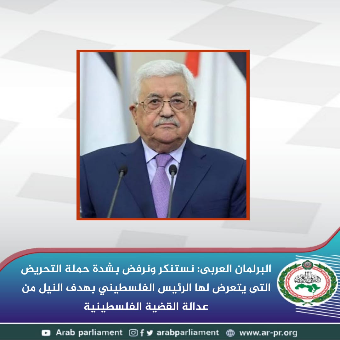 البرلمان العربي: نستنكر ونرفض بشدة حملة التحريض التي يتعرض لها الرئيس الفلسطيني بهدف النيل من عدالة القضية الفلسطينية