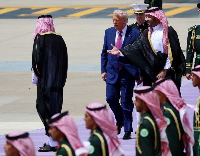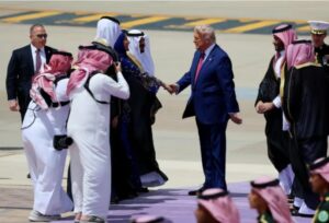 الرياض- البيادر السياسي:ـ وصل الرئيس الأمريكي دونالد ترامب، اليوم الثلاثاء، إلى المملكة العربية السعودية، في مستهل زيارة لمنطقة الخليج.في جولة تستمر أربعة أيام في منطقة الخليج تركز على الصفقات الاقتصادية أكثر من الأزمات الأمنية التي تعاني منها المنطقة، من الحرب في غزة إلى خطر التصعيد بشأن البرنامج النووي الإيراني.