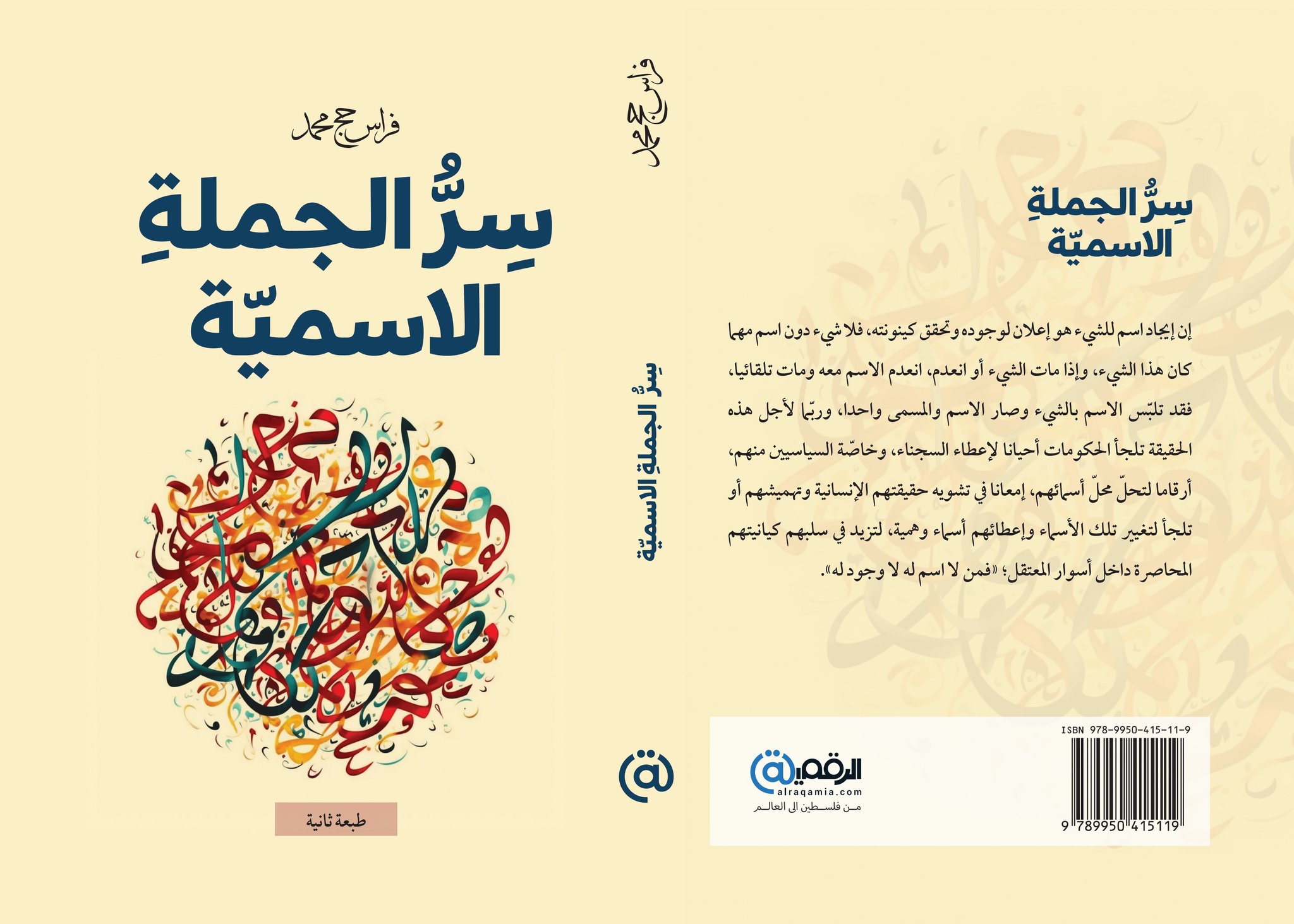رافقت زوجتي سميرة إلى طبريّا للمشاركة بمؤتمر أدارته وترأسته تناول مواضيع تختصّ بالمسالك البوليّة، مؤتمر استمرّ ثلاثة أيّام وتمّ بنجاح باهر، ورافقني في مشواري كتاب “سِرُّ الجملةِ الاسميّة” للكاتب فراس حج محمد (في تأمّل تجربة الكتابة، تقنيّة الكتابةِ بالجملة الاسميّة، 222 صفحة، الصادر عن الرقميّة للنشر والتوزيع الإلكتروني، القدس، فلسطين. صدر له 35 كتاباً ومن آخرها: “في الوجه والمواجهة”، و”متلازمة ديسمبر”، و”في رحاب اللُّغة العربيّة”، وديوان “في أعالي المعركة”، و”تصدّع الجُدران”، و”مساحة شخصيّة”، و”الثرثرات المحبّبة”، و”فتنة الحاسة السادسة– تأمّلات حَولَ الصُّوَر”، وحرّر 17 كتاباً).