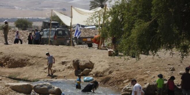 مستوطنون يقتحمون شلال العوجا شمال أريحا برفقة أغنامهم