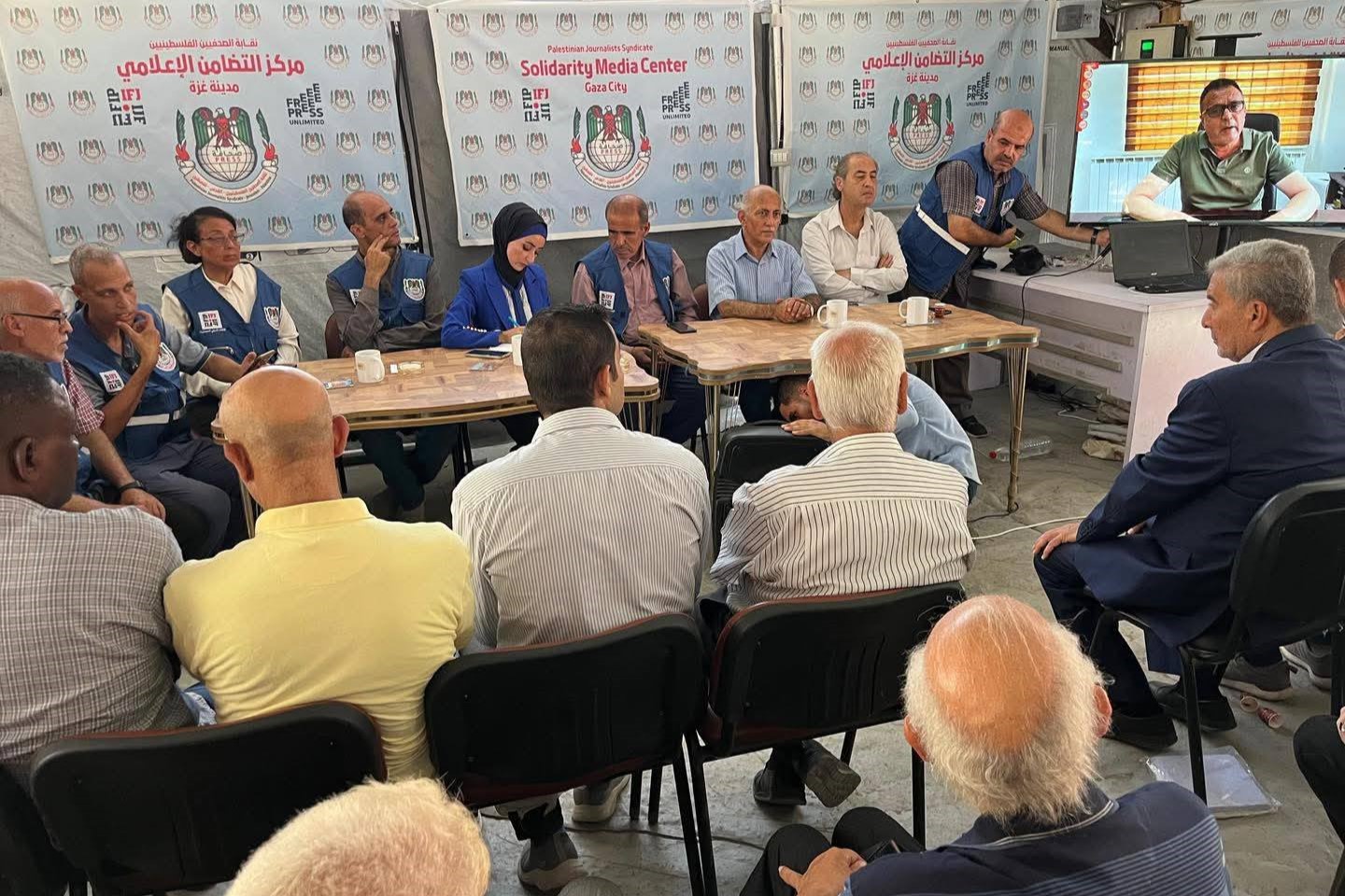 وشارك في فعالية الافتتاح عبر تطبيق “زووم”، مسؤول المنطقة العربية في الاتحاد الدولي للصحفيين منير زعرور، والمديرة التنفيذية لمؤسسة صحافة حرة بلا حدود (FPU) روث كرونينبرغ، ونقيب الصحفيين ناصر أبو بكر، فيما حضر في غزة نائب النقيب تحسين الأسطل، وعدد من أعضاء الأمانة العامة والمجلس الإداري للنقابة، وممثلون عن عدة مؤسسات.