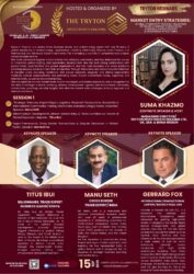 The keynote speaker will be Ms. Suma J. Khazmo, international business leader, expert in international law and trade, and Managing Director of Tryton Investments Holding. She will be joined by a distinguished group of Tryton’s partners and friends—business leaders and international experts—who will also share their insights on various topics related to global market entry. Ms. Khazmo will moderate and engage with them in two interactive sessions aimed at enriching the discussion and exchanging expertise.