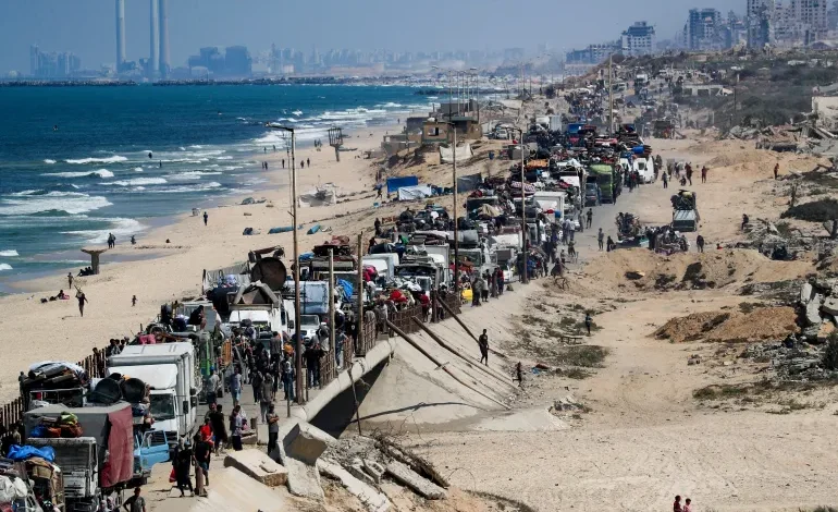واجبر جيش الاحتلال الناس على النزوح تحت القصف والطيران .وأصدر متحدث باسم جيش الاحتلال، تحذيرًا بإخلاء سكان مدينة غزة: “اعتبارًا من هذه اللحظة، شارع صلاح الدين مغلق أمام حركة المرور جنوبًا. سيواصل الجيش عملياته بقوة غير مسبوقة ضد حماس . اعتبارًا من هذه اللحظة، يُسمح بحركة المرور جنوبًا فقط عبر شارع الرشيد. حرصًا على سلامتكم، اغتنموا الفرصة وانضموا إلى مئات الآلاف من السكان الذين انتقلوا جنوبًا إلى المنطقة الإنسانية. لا تسمحوا لحماس باستغلالكم كدروع بشرية”.