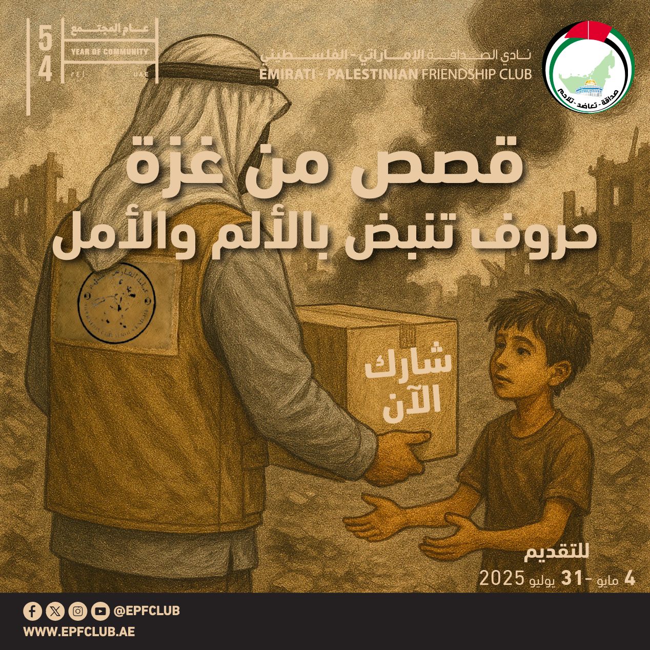 ومن الجدير ذكره أن النادي كان قد أطلق مسابقة “قصص من غزة” شهر مايو من العام الحالي، وكان آخر موعد للتقديم هو نهاية يوليو، وتهدف المسابقة إلى تسليط الضوء على الإبداع الأدبي وتوثيق القصص الإنسانية التي تحاكي عذابات هذا الشعب التواق للحرية وللحق في العيش الكريم، كما سعت إلى إتاحة الفرصة للكتاب الشباب والمبدعين من كافة الجنسيات والاعمار للتعبير عن قصصهم وتجاربهم مع الأحداث التي يمر بها سكان قطاع غزة حاليا، إيمانا من النادي بأهمية دور الثقافة في توثيق هذه القصص ونقلها للأجيال القادمة، وإبراز الروايات التي تعكس نبض الشارع الغزي، سواء من خلال سرد قصصي مستوحى من الواقع أو بأسلوب إبداعي عكس صمود وأحلام المجتمع الفلسطيني.