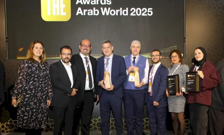 نابلس- البيادر السياسي:ـ حقّقت جامعة النجاح الوطنية إنجازاً نوعياً جديداً على مستوى التعليم العالي العربي، بعد فوزها بجائزتين مرموقتين ضمن جوائز THE Awards Arab World 2025، وذلك خلال فعاليات مؤتمر تصنيف التايمز العالمي. وقد تسلّم الجائزتين ممثلاً عن جامعة النجاح الوطنية الدكتور عبد السلام الخياط، نائب رئيس الجامعة للشؤون الأكاديمية، بحضور وفد من الجامعة ضمّ كلاً من الأستاذ الدكتور وليد صويلح، عميد البحث العلمي ومدير دائرة التصنيفات الأكاديمية العالمية، والمهندسة فادية حشايكة من دائرة التصنيفات الأكاديمية العالمية، والأستاذة سمر أبو مغلي ممثلاً عن مكتب الشراكات والمبادرات العالمية، والمهندس عنان الأغبر ممثلاً عن مكتب رئاسة الجامعة.