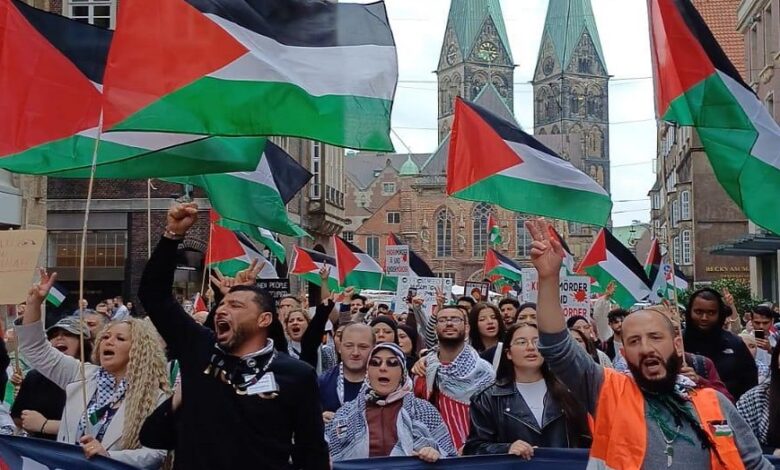 تظاهرة حاشدة في مدينة بريمن الألمانية تنديدًا باستمرار جرائم الاحتلال في غزة