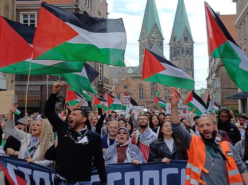 تظاهرة حاشدة في مدينة بريمن الألمانية تنديدًا باستمرار جرائم الاحتلال في غزة