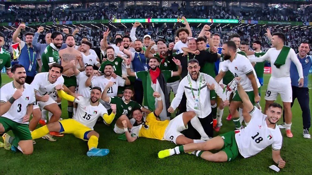 وكان منتخب فلسطين فاز في لقاء الجولة الأولى أمام قطر 1-0 وتعادل مع تونس في الجولة الثانية 2-2، ثم تعادل مع سوريا، وأصبح الآن رصيده خمس نقاط، في الصدارة ليتأهل إلى دور الثمانية في بطولة كأس العرب 2025 رسميا.