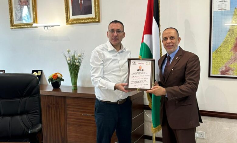 الأستاذ الدكتور/ جمال عبد الناصر محمد أبو نحل رئيس المركز القومي لعلماء فلسطين والاتحاد العام للمثقفين والادباء العرب بفلسطين وعضو نقابة اتحاد كتاب وأدباء فلسطين، ومصر، قدم خلالها د.ابو نحل التهاني والتبريكات لسعادة السفير بمناسبه توليه منصبه الجديد سفيرًا لفلسطين في سلطنة عُمان، راجيا لسعادته التوفيق والسداد.