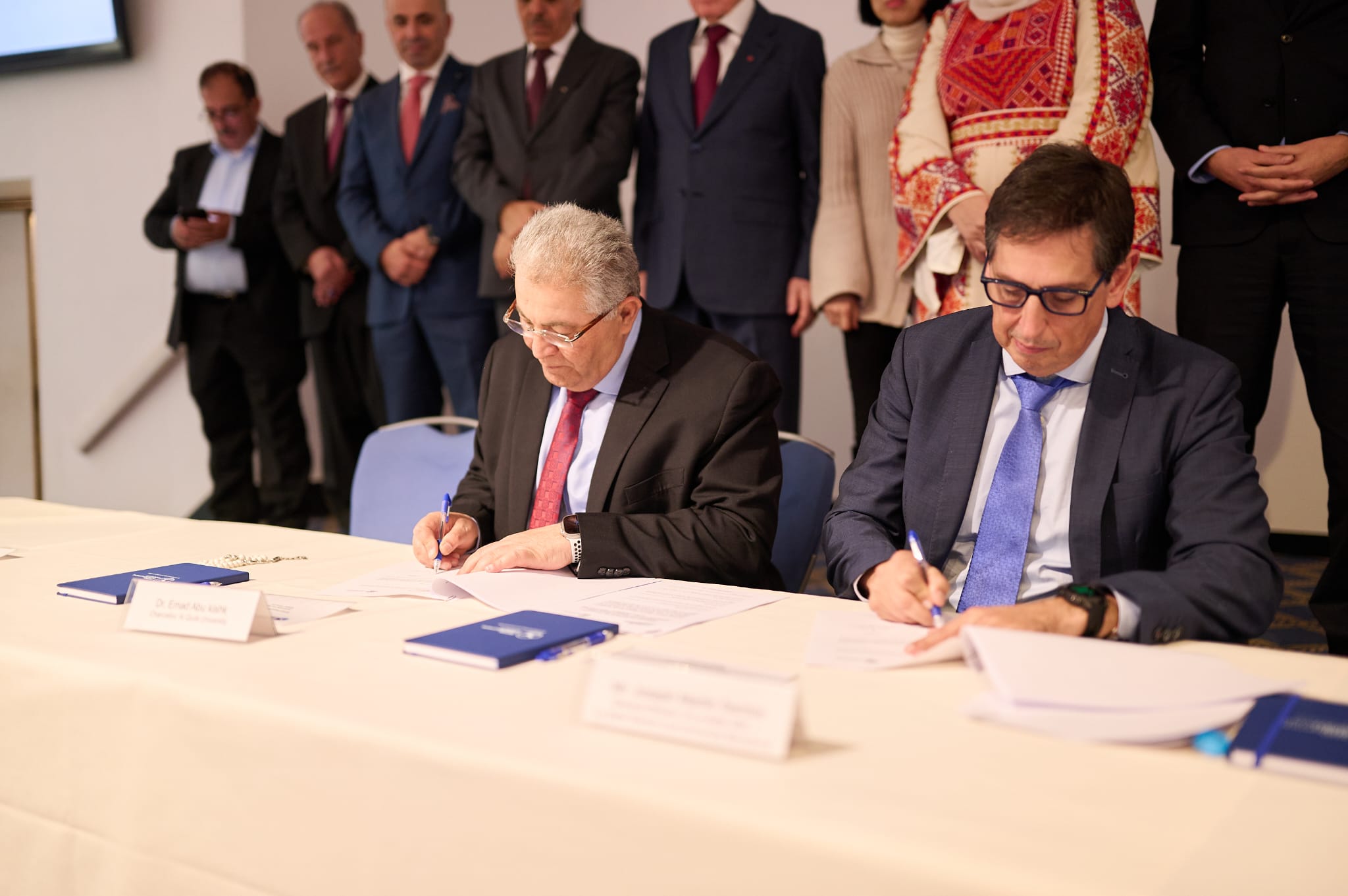 وفي السياق ذاته، أعلن أ.د. أبو كشك توقيع أولى الاتفاقيات الدولية لكلية “حماد الحرازين للتكنولوجيا”، موضحًا أنه وقّع مع د. جوزيف مارتن سانتوس، المدير العام لجامعة لا سال في برشلونة، اتفاقية تعاون أكاديمي لمنح الشهادة المزدوجة بين جامعة القدس والجامعة الإسبانية، في عدد من البرامج الأكاديمية ضمن الكلية، لتكون بذلك أولى الاتفاقيات الدولية للكلية التكنولوجية الأحدث في فلسطين، وخطوة نوعية نحو تدويل البرامج الأكاديمية وتعزيز فرص الطلبة للمنافسة إقليميًا ودوليًا.