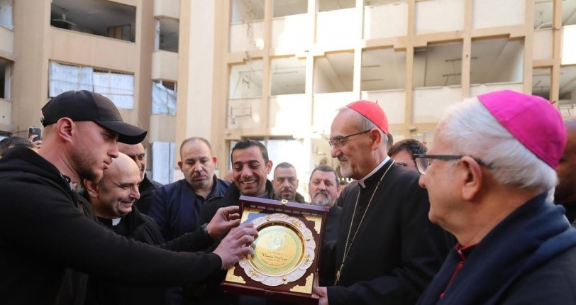 والتقى البطريرك برعيته وبعض مؤسسات المجتمع المدني بمناسبة عيد الميلاد رغم ظروف الحرب في قطاع غزة.