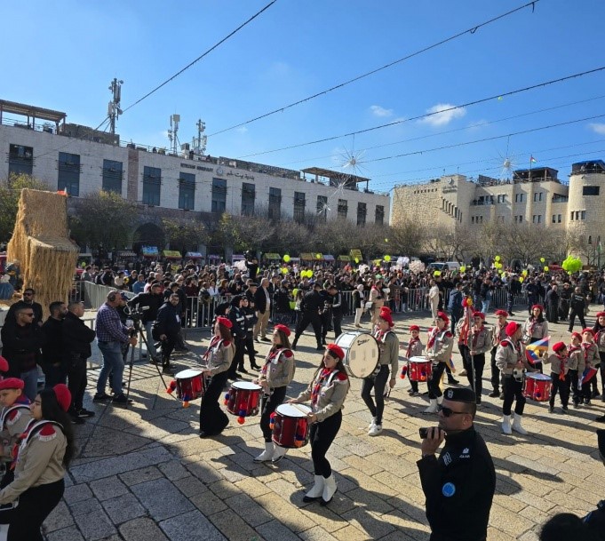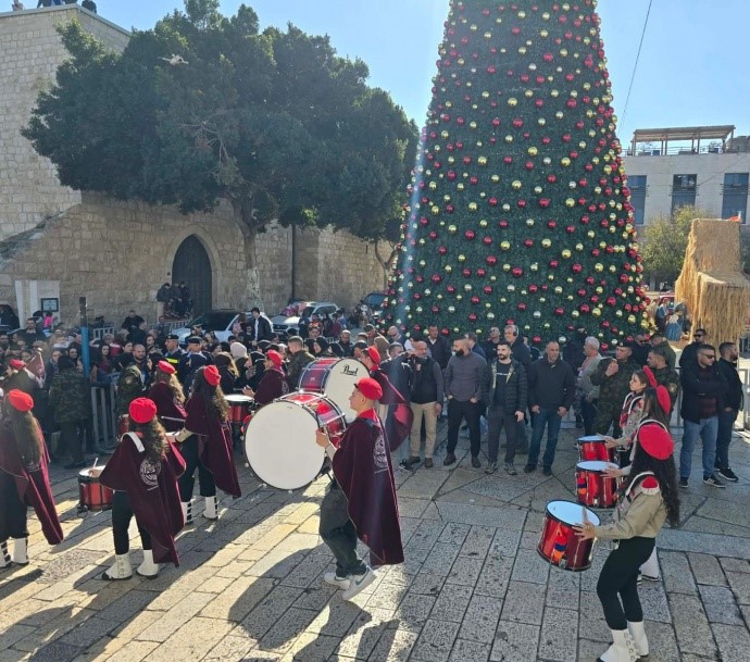 بيت لحم – البيادر السياسي:- عادت مدينة بيت لحم، إلى أجواء الاحتفال بأعياد الميلاد، بعد توقف استمر لعامين متتاليين نتيجة حرب الإبادة، والتداعيات الاقتصادية التي أثرت على المدينة وقطاعها السياحي بشكل خاص. وشهدت ساحة المهد انطلاق الفعاليات الرسمية وسط حضور شعبي ورسمي، في مشهد أعاد الأمل لسكان المدينة وأصحاب المنشآت السياحية.