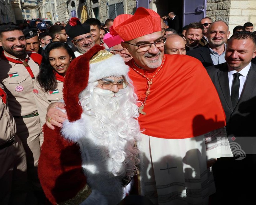 بيت لحم- البيادر السياسي:ـ وصل موكب بطريرك القدس للاتين بيير باتيستا بيتسابالا، اليوم الأربعاء، إلى بلاط ساحة المهد في مدينة بيت لحم، وذلك في إطار الزيارة الرسمية بمناسبة الأعياد المجيدة، حيث تقدّم الموكب عدد من الفرق الكشفية.