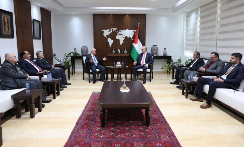 رام الله- البيادر السياسي:ـ التقى رئيس الوزراء محمد مصطفى، اليوم الأربعاء، في رام الله، وفدًا من مجلس القضاء الأعلى برئاسة رئيس المجلس المستشار محمد عبد الغني عويوي، بحضور وزير العدل شرحبيل الزعيم، والأمين العام لمجلس الوزراء دواس دواس، والأمين العام لمجلس القضاء الأعلى القاضي محمد عياد العجلوني، والقاضي رائد عساف قاضي المحكمة العليا ومستشار رئيس مجلس القضاء، والقاضي محمد غانم المشرف على محاكم التسوية، ومدير مركز الاتصال الحكومي محمد أبو الرب.