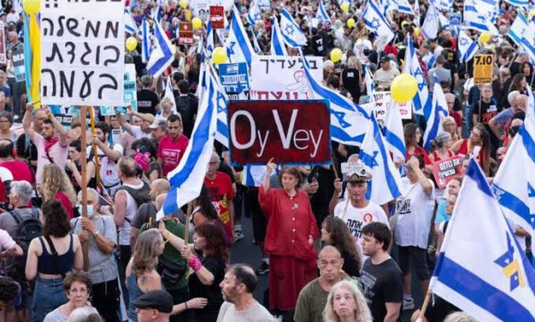 مظاهرة احتجاج ضد الحكومة الإسرائيلية في تل أبيب بمشاركة شخصيات بارزة