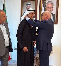 ونيابة عن الرئيس، قلد سفير دولة فلسطين في الكويت رامي طهبوب، السعد وسام نجمة الاستحقاق في مقر السفارة، اليوم الثلاثاء، بحضور مستشار رئيس الوزراء للصناديق العربية والإسلامية الوزير ناصر قطامي، ومستشار رئيس الوزراء للشؤون الاقتصادية باسم عبد الحليم.