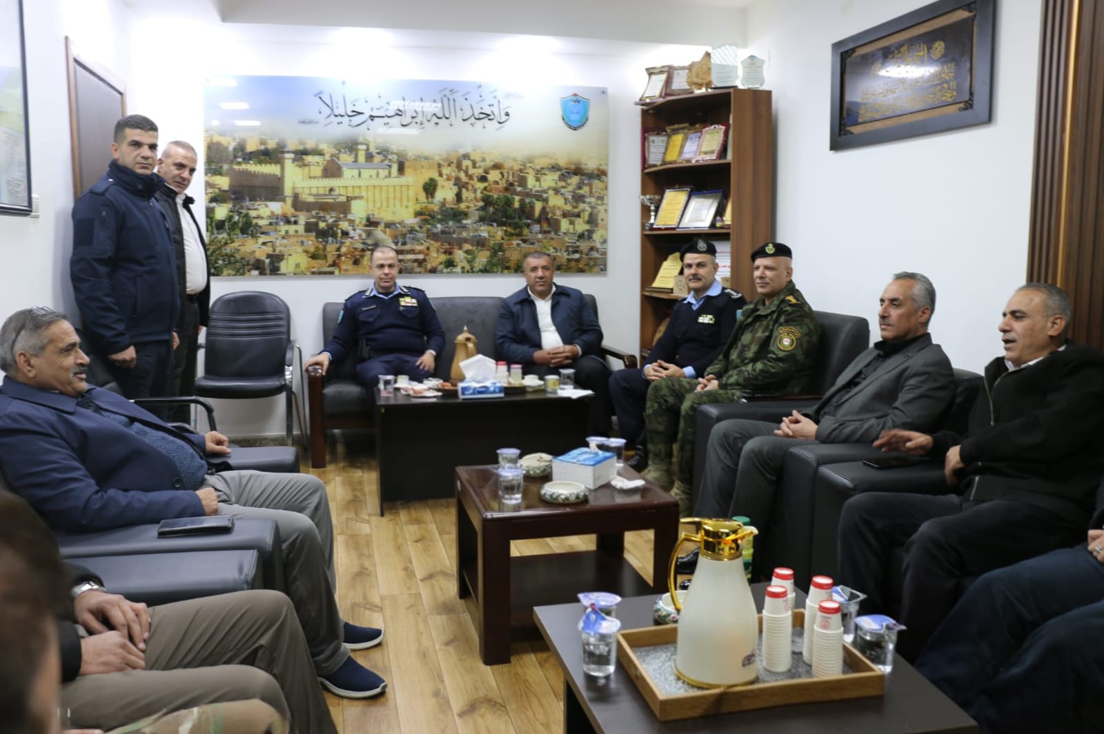 والتقى سيادته في مديرية الشرطة بعطوفة محافظ الخليل خالد دودين، ومدراء الأجهزة الأمنية في المحافظة، وأمناء سر الأقاليم، وعدداً من أعضاء الغرفة التجارية وملتقى رجال الأعمال، مؤكداً أهمية الشراكة والتكامل بين جهاز الشرطة والمؤسسات الرسمية والأهلية والاقتصادية في تعزيز الأمن والاستقرار وخدمة المجتمع.