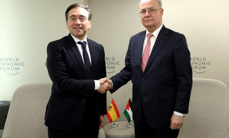 دافوس – البيادر السياسي:ـ بحث رئيس الوزراء محمد مصطفى، على هامش مشاركته في منتدى دافوس الاقتصادي، مع وزير خارجية إسبانيا خوسيه مانويل ألباريس، التنسيق وتعزيز الدعم السياسي والدبلوماسي والمالي لدولة فلسطين.