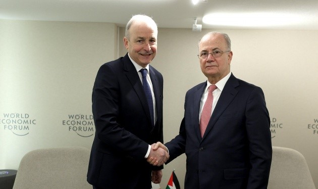 كما التقى رئيس الوزراء محمد مصطفى، اليوم الخميس على هامش منتدى دافوس الاقتصادي، نظيره الإيرلندي مايكل مارتن، حيث اطلعه على مستجدات الأوضاع في فلسطين، لا سيما الجهود المبذولة لتثبيت وقف إطلاق النار في قطاع غزة وتكثيف إدخال المساعدات الإنسانية، إضافة إلى الانتهاكات الاسرائيلية المتصاعدة في الضفة الغربية بما فيها القدس.