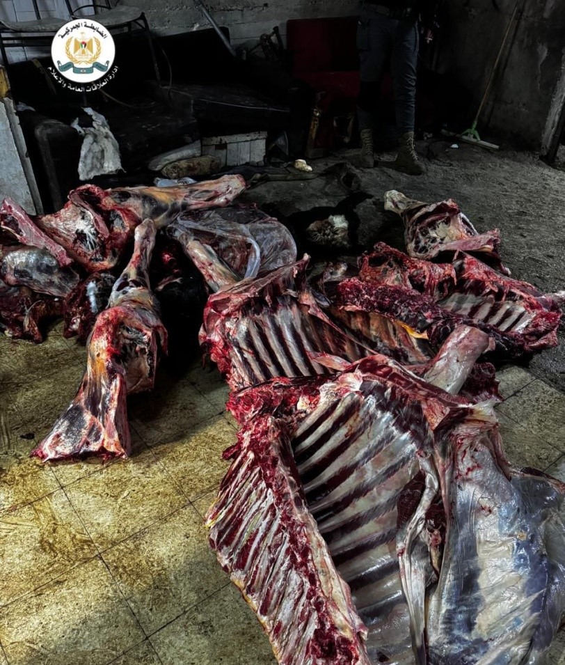 الخليل- البيادر السياسي:ـ بناءً على العمل الأمني المشترك، ضبط جهازي الضابطة الجمركية والأمن الوقائي، بالتعاون مع بلدية دورا وجهة الاختصاص في وزارتي الصحة والزراعة، اليوم السبت، داخل أحد المخازن في محافظة الخليل، حوالي 600 كيلو لحوم غير صالحة للاستهلاك الآدمي؛ نتيجة لظهور علامات تدل على فسادها، حيث أن تناولها قد ينجم عنه مخاطر صحية كبيرة على المستهلكين.