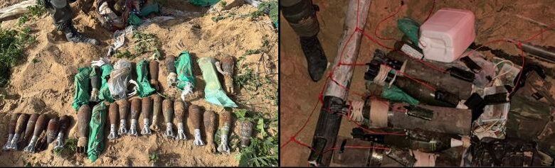 وإلى جانب القذائف، عُثر أيضاً على عدد من الصواريخ ومعدات قتالية أخرى مخبأة في بطانيات. وقد تم تدمير الأسلحة التي عُثر عليها في منطقة الخط الأصفر.