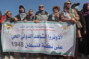 ورفع المشاركون في التظاهرة لافتات وشعارات تؤكد رفضهم القاطع لكل الإجراءات والتقليصات التي تستهدف وكالة أونروا، معتبرين أنها تمثل حلقة خطيرة في مسلسل تصفيتها سياسياً وإنسانياً، وضرب جوهر دورها شاهداً دولياً حياً على النكبة الفلسطينية وتهجير الشعب الفلسطيني قسراً من أرضه وقراه ومدنه المحتلة عام 1948.