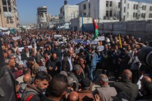 وشهدت الوقفة التي نظمت امام مقر عمليات الاونروا الرئيسي في مدينة عزة تحت شعار: “أونروا خط أحمر” حضوراً واسعاً من فصائل المنظمة، والوجهاء، وكوادر حركة ‘فتح’، وآلاف اللاجئين الذين احتشدوا للتنديد بمخططات الاحتلال الرامية لتصفية الوكالة، مؤكدين في الوقت ذاته دعمهم الكامل لمطالب العاملين العادلة وحقوقهم الوظيفية كجزء أصيل من معركة الحفاظ على الشاهد الأممي الوحيد على قضية اللاجئين، محذرين من التداعيات الإنسانية والسياسية الخطيرة لهذه المخططات.”