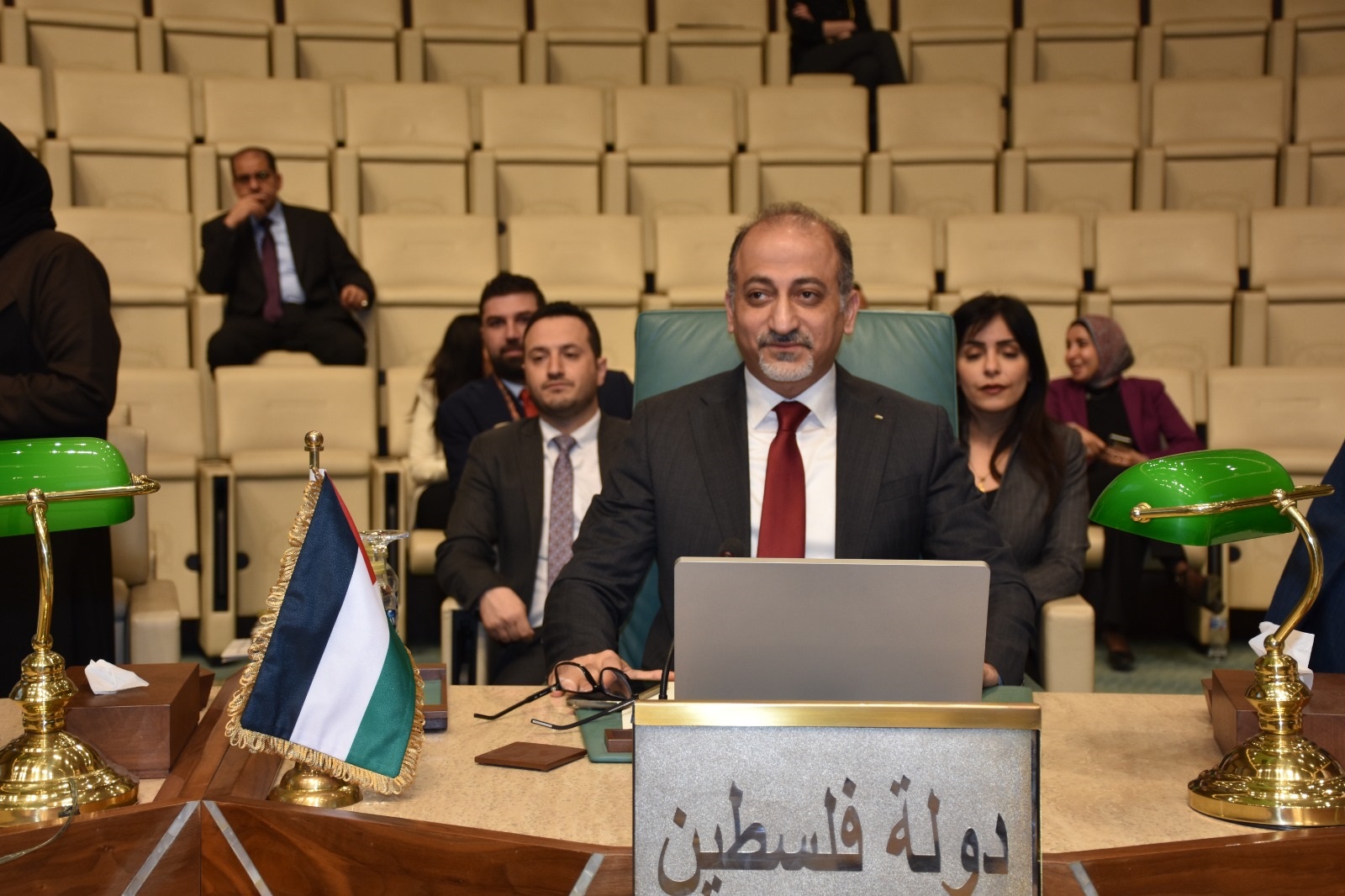 وترأس وفد دولة فلسطين مندوبها بجامعة الدول العربية السفير مهند العكلوك، بحضور المستشار الأول رزق الزعانين، والسكرتير الأول ريهام البرغوثي، والسكرتير الثالث ماهر مسعود، والسكرتير الثالث علا عامر.