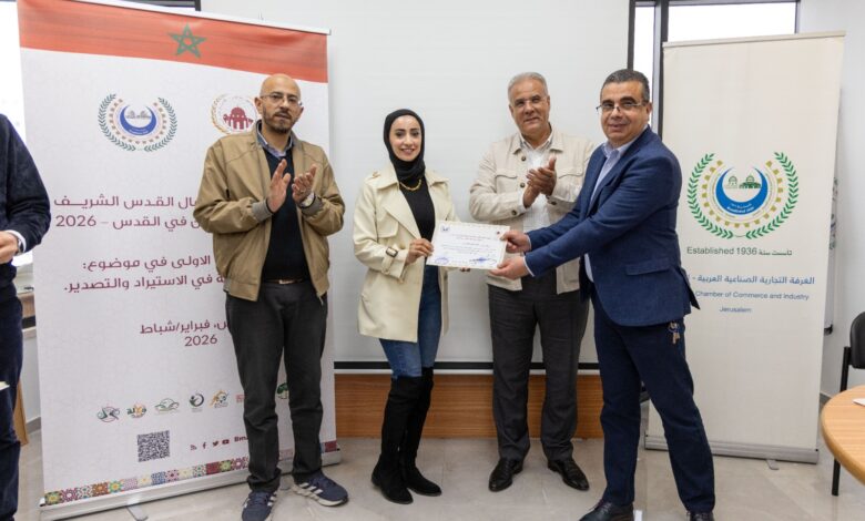 من جهة أخرى، حضر السيد الشرقاوي، مرفوقا بمدير فرع الغرفة التجارية بالعيزرية، علي شقيرات، والمدير العام لمجلس الشاحنين الفلسطينين، إيهاب البرغوثي، وعضو مجلس الإدارة، وائل حجازي، اختتام الدورة التدريبية الأولى حول “الكفاءة المهنية في الاستيراد والتصدير”، ضمن الاتفاقية الموقعة في القدس بين الوكالة والغرفة التجارية في 24 ديسمبر 2025.