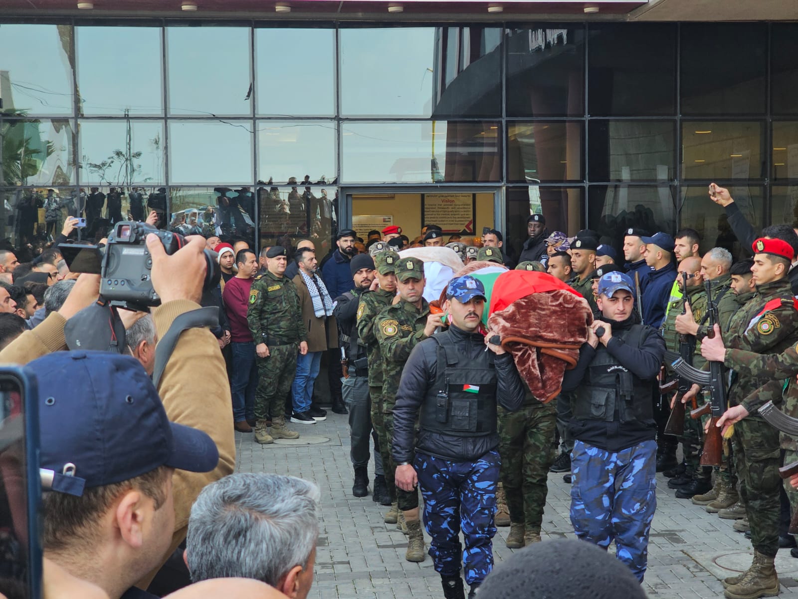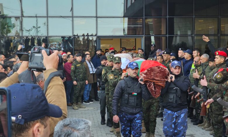 وانطلقت الجنازة المهيبة من مستشفى دورا الحكومي جنوب المحافظة، بمشاركة محافظ الخليل خالد دودين، والعميد هيثم الفروخ نائب مدير شرطة المحافظة، وممثلي الأجهزة الأمنية.