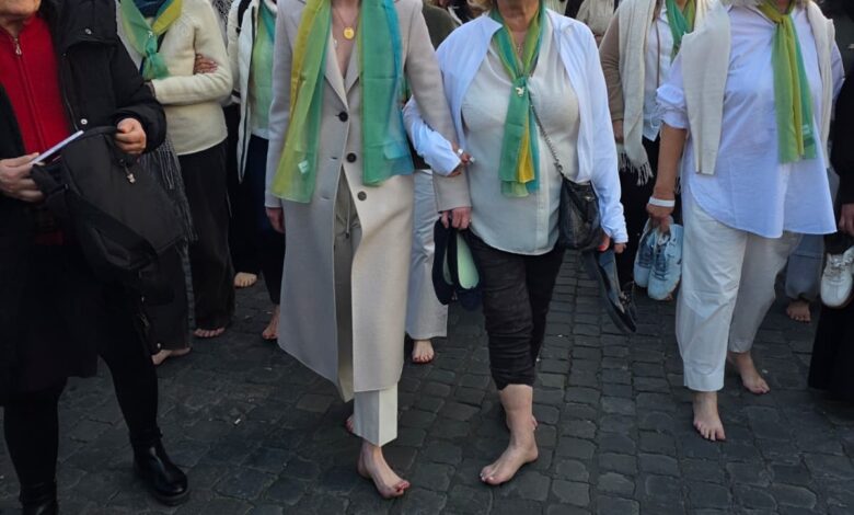 نساء يسِرن من أجل السلام في خمس قارات – وفي القدس أيضًا*: سارت عشر نساء فلسطينيات من حركة “نساء الشمس” وعشر نساء إسرائيليات من حركة “نساء يصنعن السلام” حافيات الأقدام في شوارع روما في 24 آذار/مارس، إلى جانب مئات النساء من أنحاء العالم، في إطار حدث دولي يدعو إلى إنهاء الحرب ودفع اتفاق سياسي. وبالتوازي، من المتوقع تنظيم مسيرات تضامن في خمس قارات، بما في ذلك في القدس.