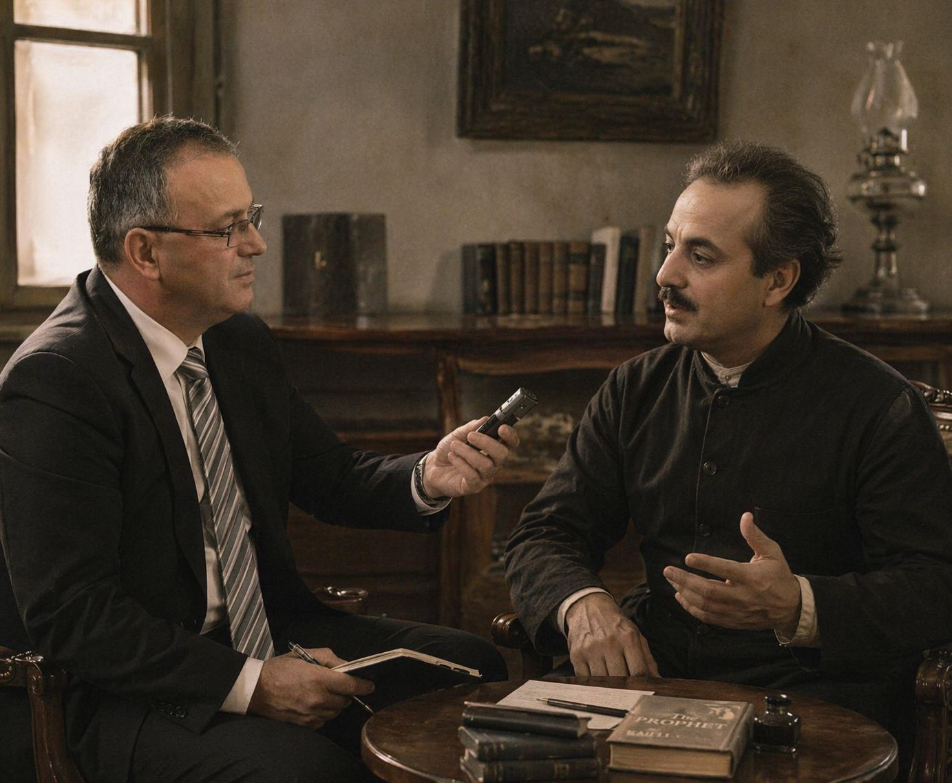 لقاء صحفي فكري مع الفيلسوف والأديب اللبناني جبران خليل جبران حول العدوان الأخير على لبنان والانقسام الداخلي فيه