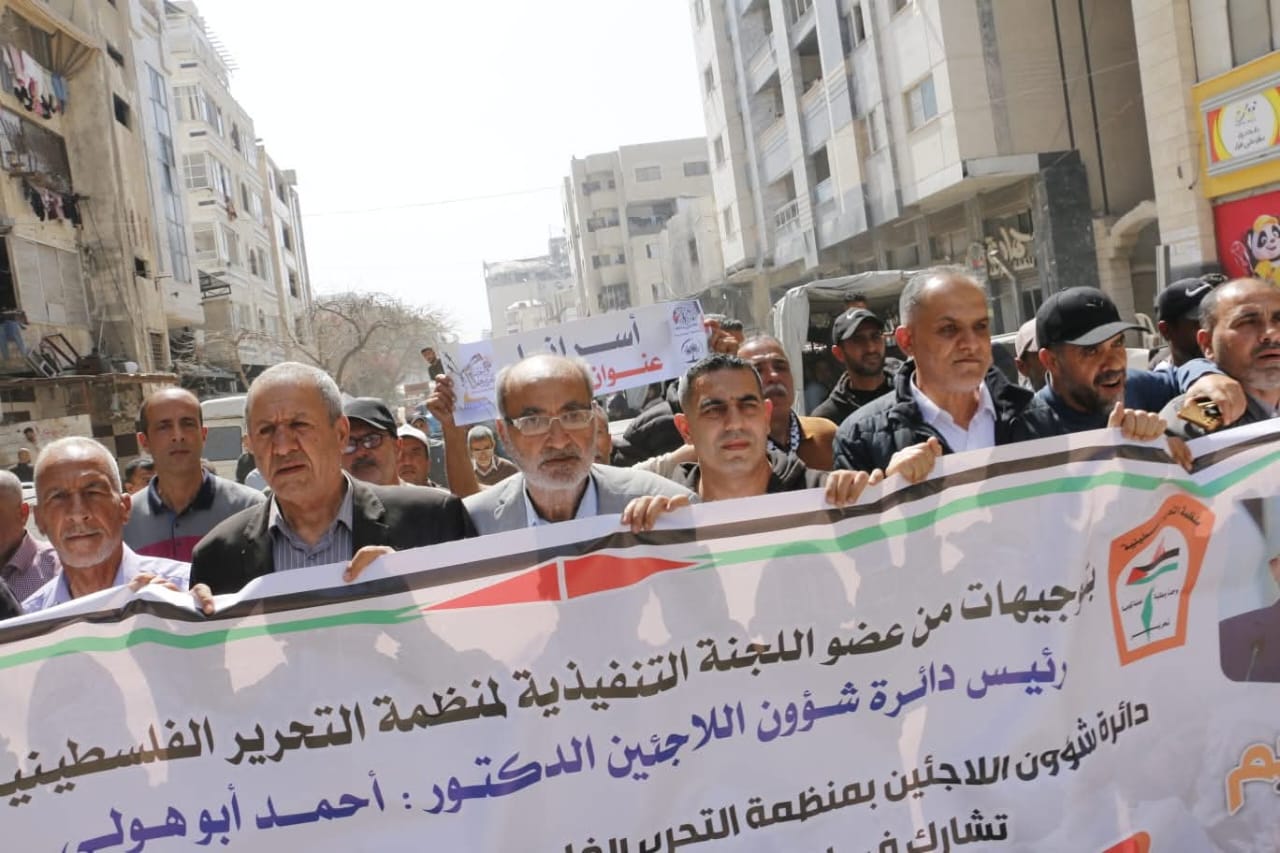 دائرة شؤون اللاجئين واللجان الشعبية تشاركان في مهرجان جماهيري إحياءً ليوم الأسير أمام مقر الصليب الأحمر في غزة