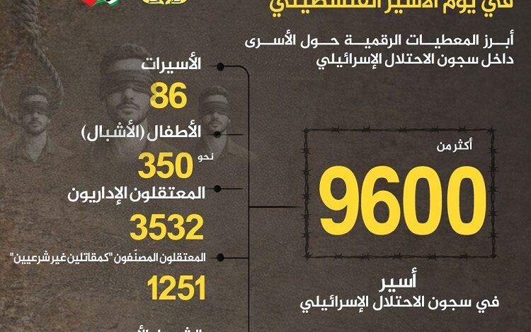 وأوضحت في بيان صدر عنها لمناسبة يوم الأسير الفلسطيني، أن عدد الأسيرات بلغ 86 أسيرة، بينهن أسيرتان معتقلتان منذ ما قبل العدوان، و25 أسيرة معتقلة إداريًا، فيما بلغ عدد الأطفال الأسرى نحو 350 طفلًا، موزعين على سجني “عوفر” و”مجدو”، إضافة إلى طفلتين في سجن “الدامون”.