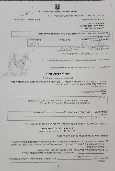 القدس المحتلة ـ البيادر اسياسي ـ  اقتحمت ما تُسمى بـ”دائرة الإجراء” التابعة لسلطات الاحتلال الإسرائيلي، اليوم الخميس، حي بطن الهوى في بلدة سلوان جنوب المسجد الأقصى المبارك، وسلّمت عائلة الرجبي قرارات تقضي بإخلاء 7 شقق سكنية لصالح جمعية “عطيرت كوهنيم” الاستعمارية، ضمن مساعي تهويد الحي والاستيلاء على منازله.